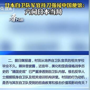 日本自卫队军官持刀强闯中国使馆:六问日本当局。